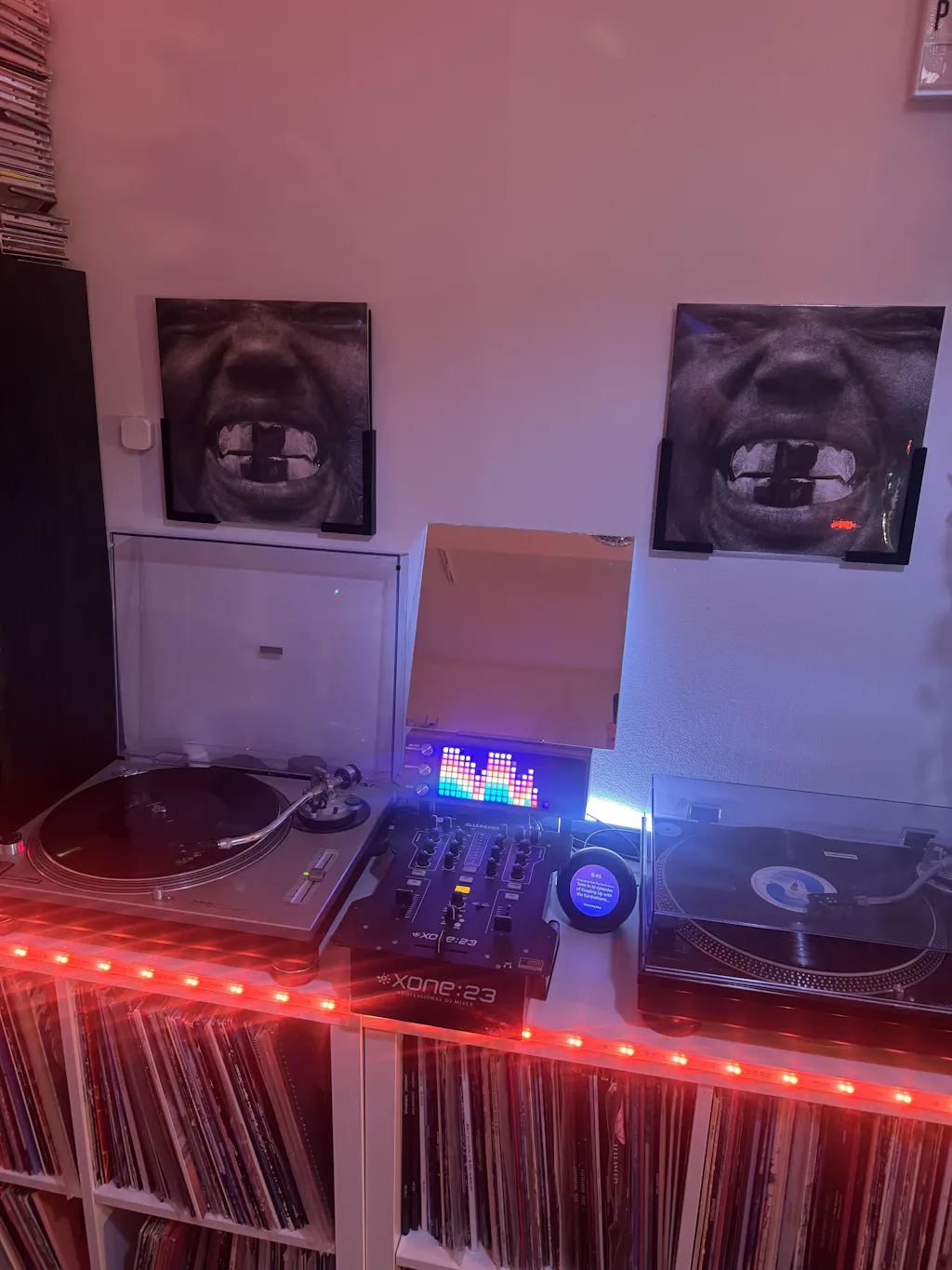 • The media holder can accommodate 2LP and 3LP vinyl sleeves (up to 1.5 cm / 0.6 inches thick) as well as CD cases.